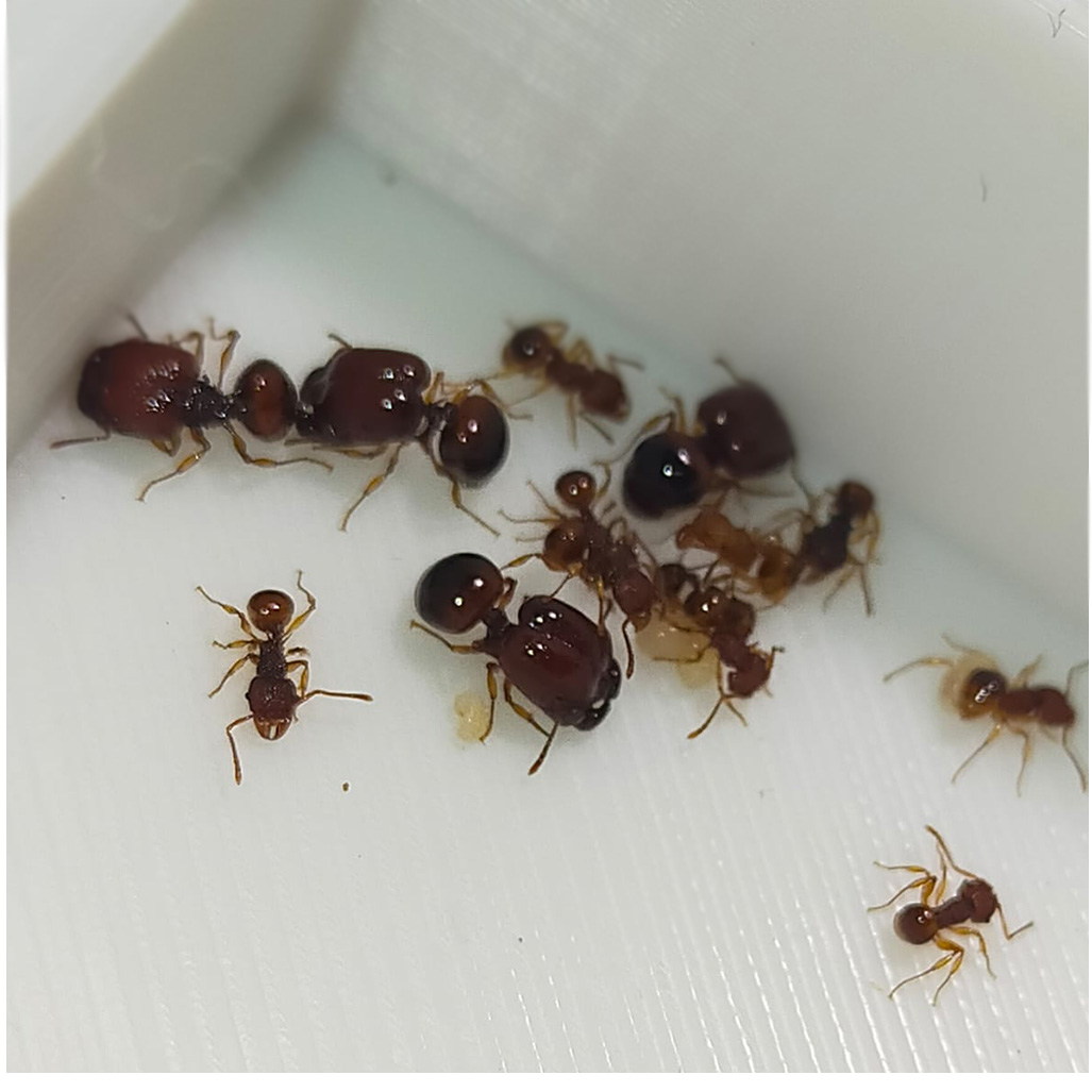Tipo de hormiguero: Acrílico o de yeso con cámara húmeda. Requiere una zona de forrajeo con buena ventilación.