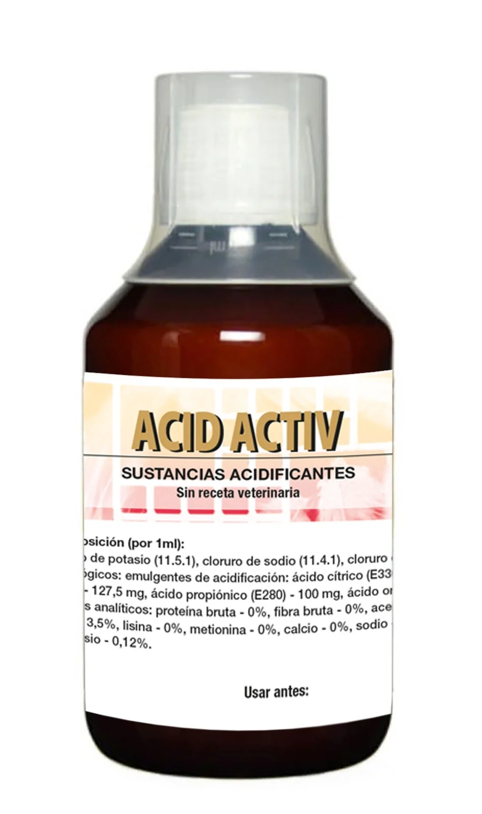 ACID ACTIV – es un acidificante de muy buena calidad que contiene una mezcla de ácidos orgánicos. Al acidificar el agua potable, inhibe el crecimiento de bacterias patógenas, virus y hongos en el tracto digestivo de las aves.