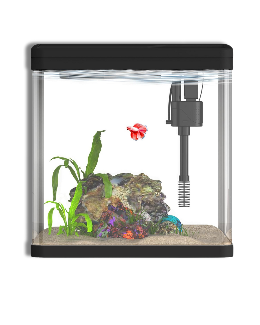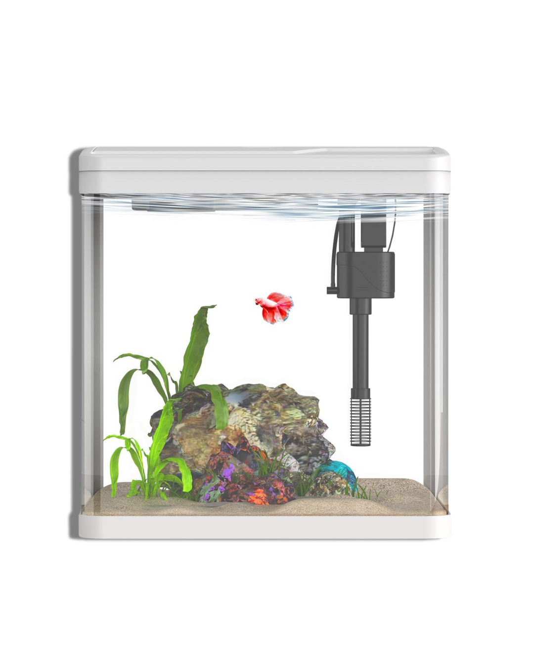 Acuario completo (de vidrio) de 60 lts con tapa, filtro seco-húmedo e iluminación led. Medidas: 50×28.6×47.3 cm