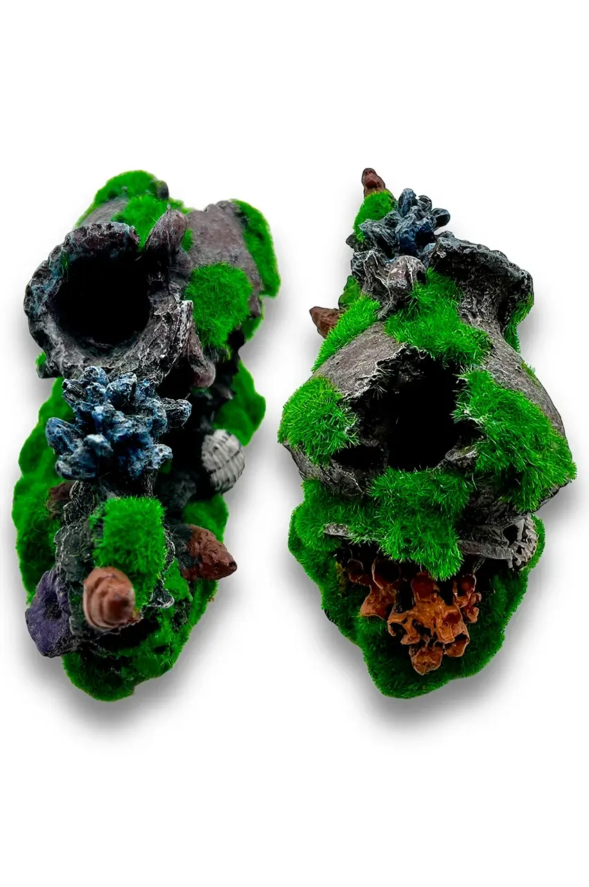 - Diseño Realista: El cántaro cubierto de musgo tiene una textura y apariencia natural, creando un ambiente auténtico en tu acuario. 🌱