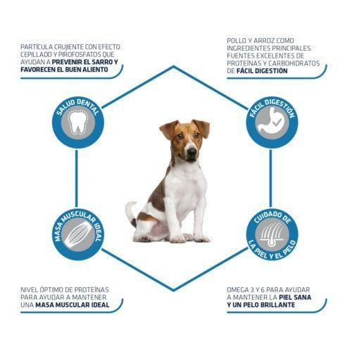 ADVANCE Adult Mini es un alimento de alta gama fácil de digerir formulado para cubrir sus necesidades específicas. Facilita el correcto funcionamiento del sistema inmunitario y las barreras naturales y les ayuda a mantener una masa muscular óptima, la salud dental e intestinal, la piel sana y el pelo brillante. Además, el tamaño de las croquetas se adapta al tamaño de la mandíbula de tu perro Mini. Está especialmente indicado para perros de raza pequeña de 8 meses a 8 años de edad.