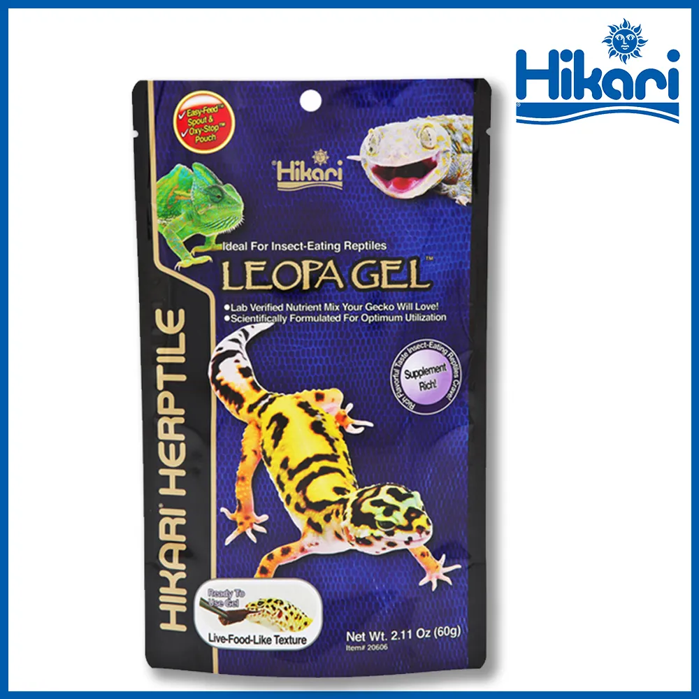 Presentación 60gr. LeopaGel es una dieta revolucionaria, científicamente formulada, única y equilibrada de pasta lista para usar con el embalaje de múltiples capas Oxy-Stop para mantener la frescura. Contiene una amplia variedad de sabrosos ingredientes junto con todos los nutrientes necesarios, vitaminas necesarias, aminoácidos y oligominerales insectos comer geckos como el leopardo Gecko necesita vivir una vida larga y saludable. Calidad internacional premium de HIKARI.