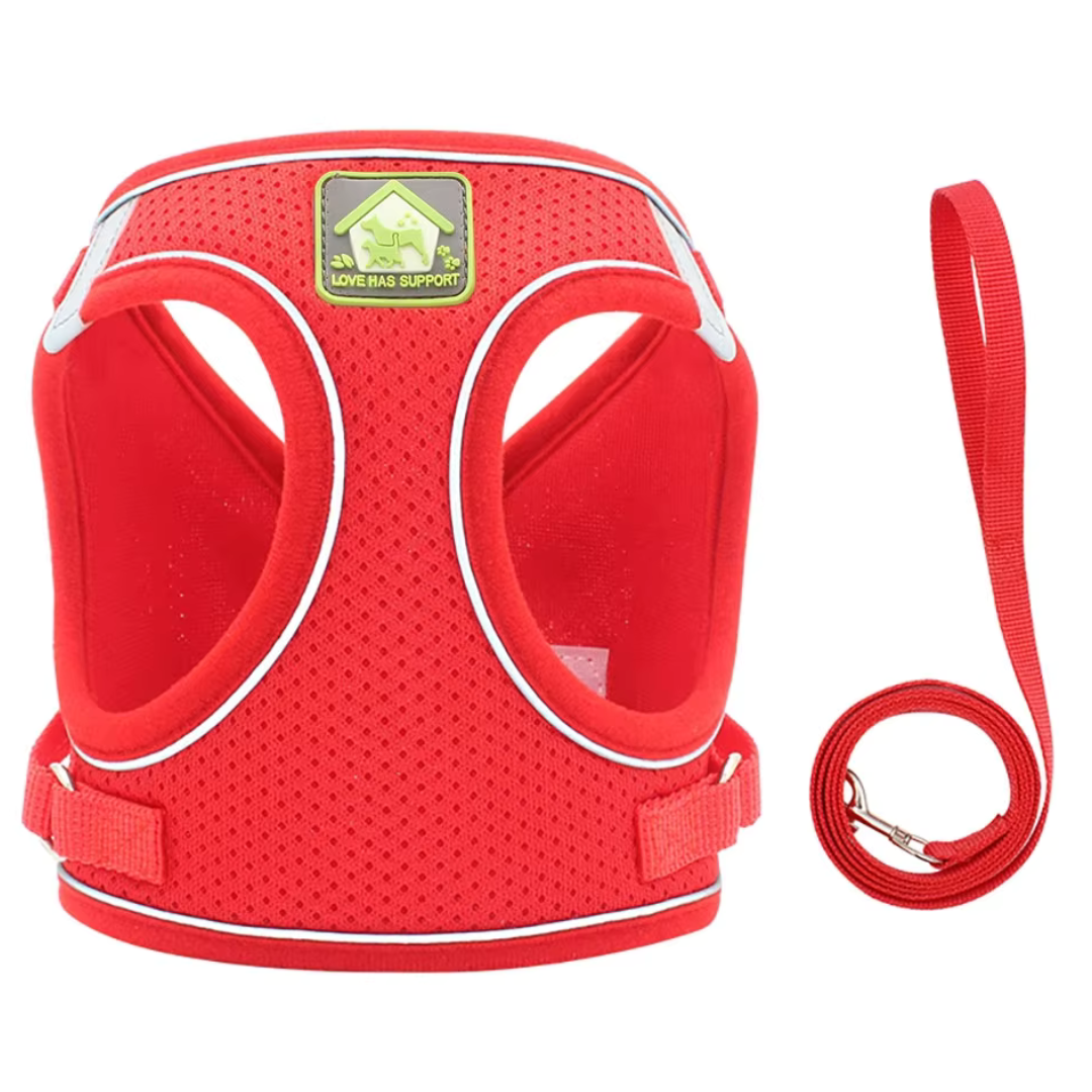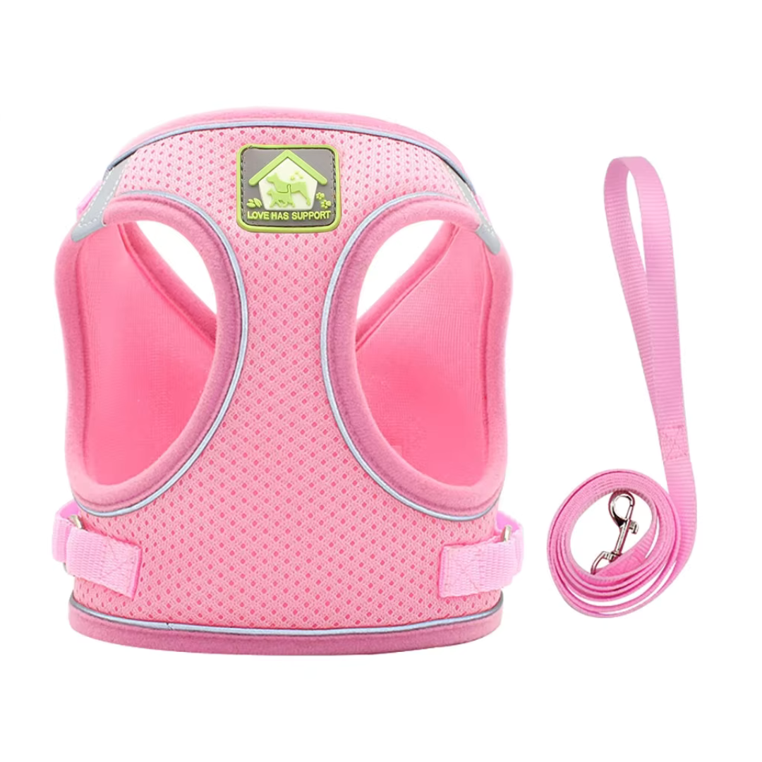 Este arnés de tela dry fit, disponible en varios colores, ofrece comodidad y un ajuste perfecto para perros pequeños. Su diseño ligero y transpirable mantiene a tu mascota fresca durante los paseos. Incluye una correa a juego, brindando un conjunto práctico.