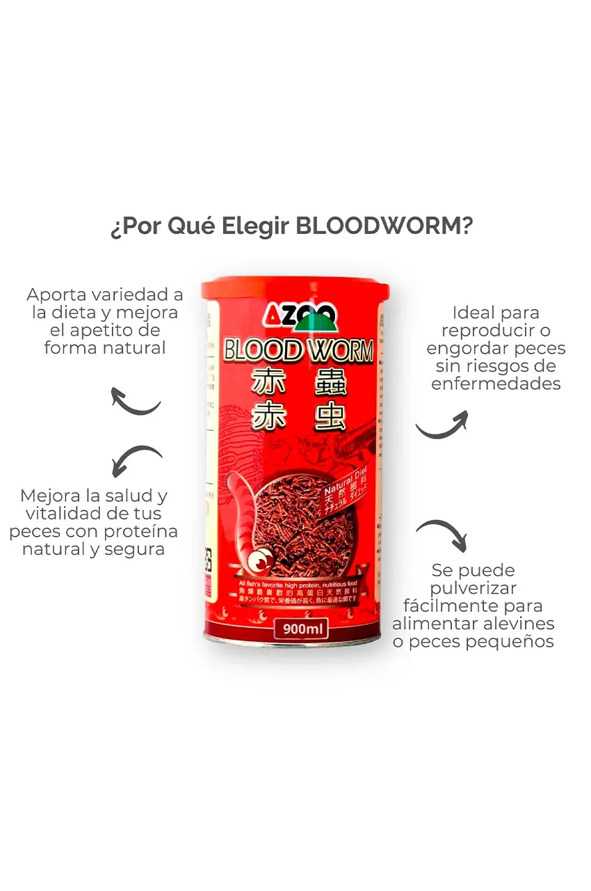 Las BLOODWORM son larvas rojas de mosquito liofilizadas que brindan un alto valor nutricional sin riesgo de patógenos 🦠. Perfectas para peces en etapa de reproducción o que necesitan una dieta más variada.