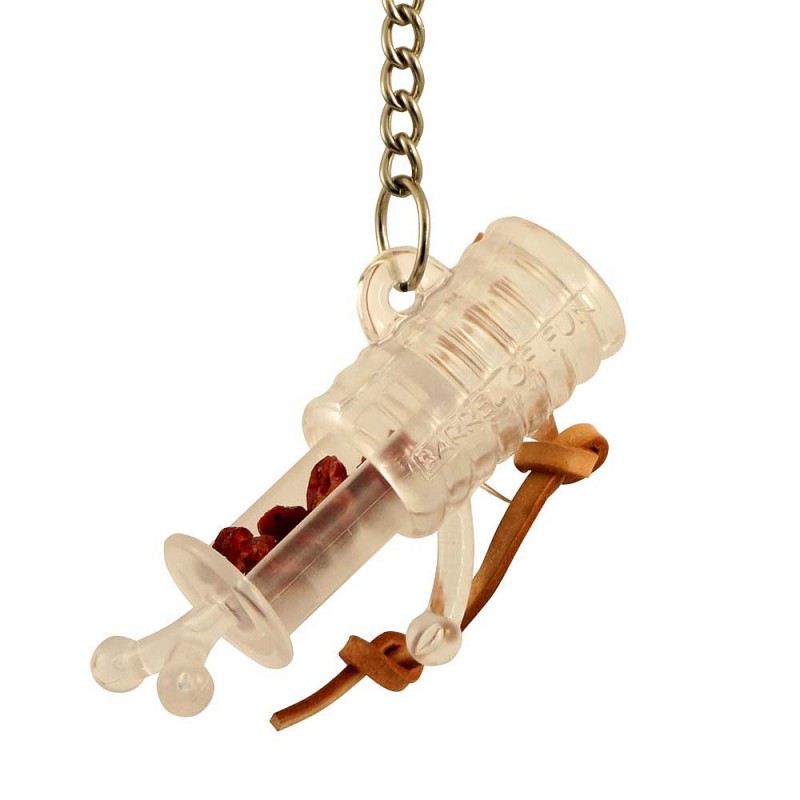 Resistente y entretenido juguete para todo tipo de loros en el que debemos introducir sus premios favoritos para que el ave trate de sacarlos.