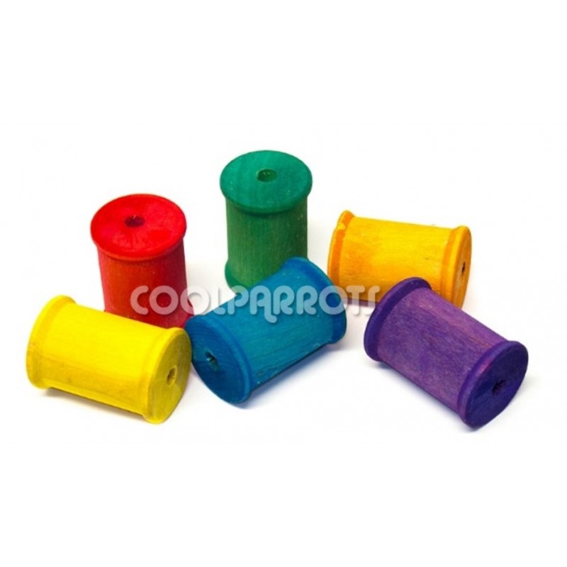 Grueso cilindro de madera de llamativos colores ideal para recomponer viejos juguetes o para crear juguetes nuevos.