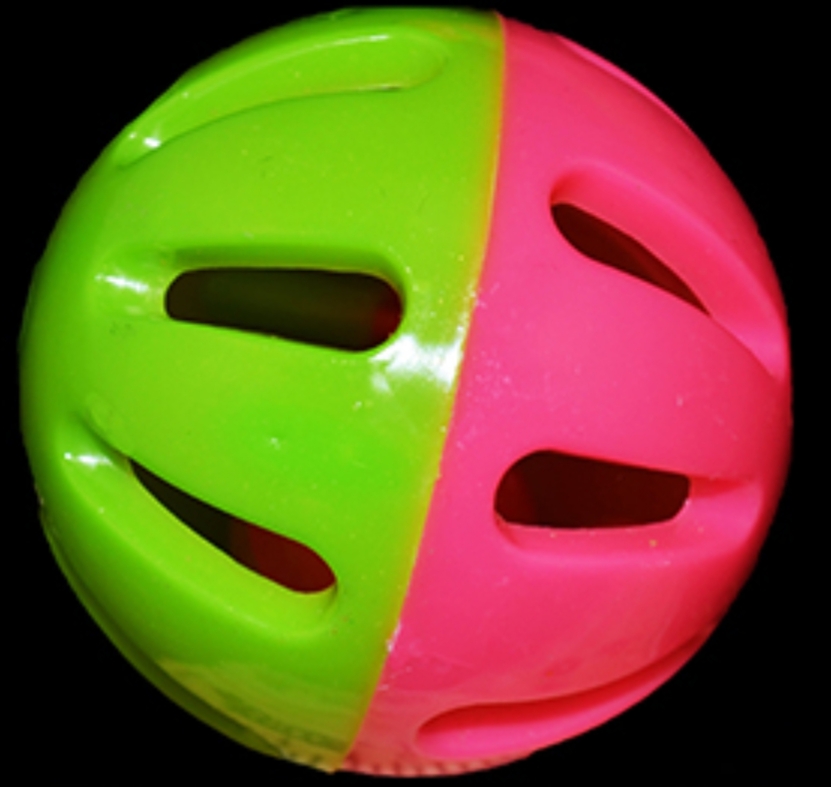 Entretenida pelota de plástico de llamativos colores para loritos de tamaño mediano como caiques, cotorritas, nóbilis, etc.
