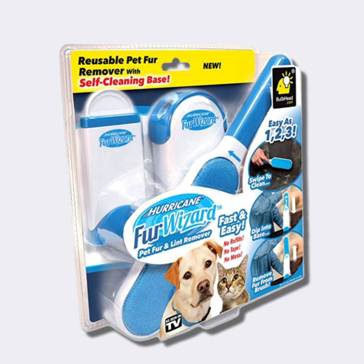 Cepillo Hurricane Fur Wizard, es portátil, reusable y auto limpiable . Remueve las motas, el pelo y pelusa con facilidad, debido a que tiene doble cara.