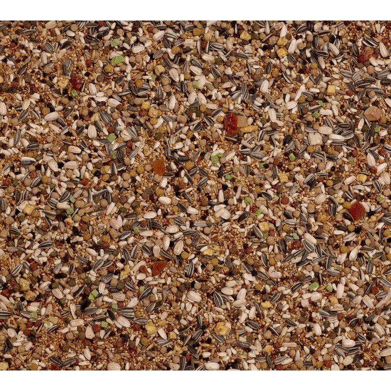 Mezcla de semillas variada y equilibrada que contiene más de 30 ingredientes que cumple las exigencias nutricionales de los cotorras australianas.