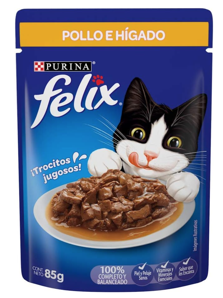 Purina Felix Pollo e Hígado es una deliciosa combinación que tendrán a tu gato esperando con impaciencia la hora de comer todos los días. Ofrece a tu gato un alimento hecho con los ingredientes más deliciosos y de la más alta calidad, cada porción es una fuente de ácidos grasos esenciales Omega 6, y la perfecta combinación de nutrientes para satisfacer al 100% las necesidades diarias de tu gato.