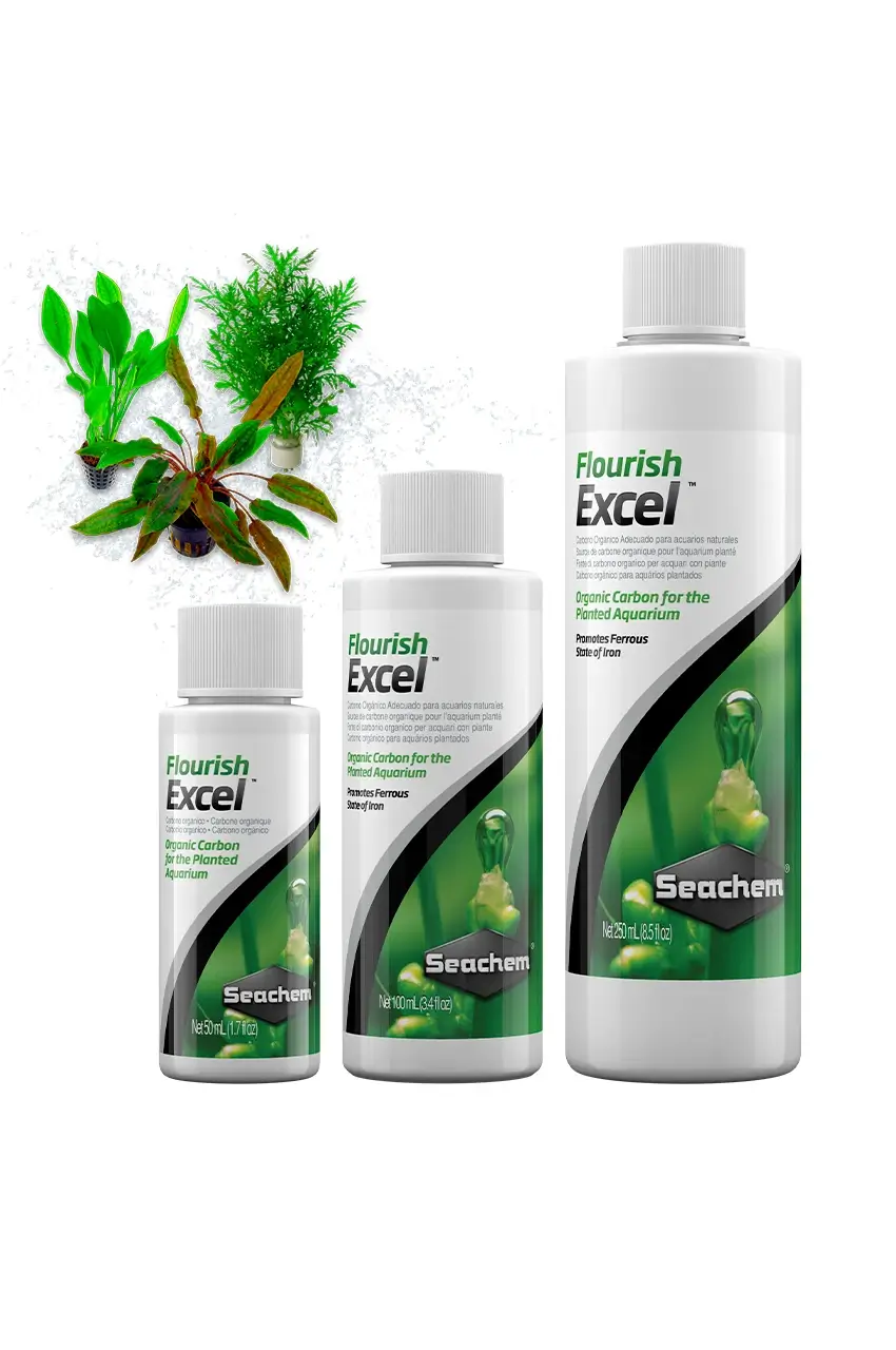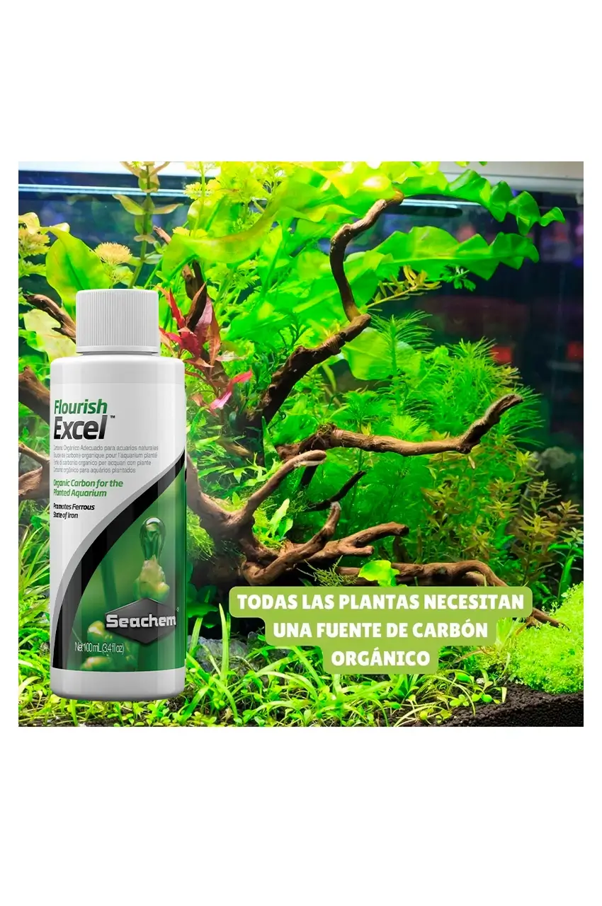 Flourish Excel™ es una fuente de carbono orgánico diseñada para satisfacer las necesidades de tus plantas de acuario. Aunque el dióxido de carbono (CO₂) es vital para la fotosíntesis, Flourish Excel™ ofrece una alternativa eficiente al proporcionar compuestos orgánicos intermedios que las plantas pueden utilizar directamente en sus procesos fotosintéticos. Esto significa que incluso sin un sistema de inyección de CO₂, tus plantas pueden prosperar.