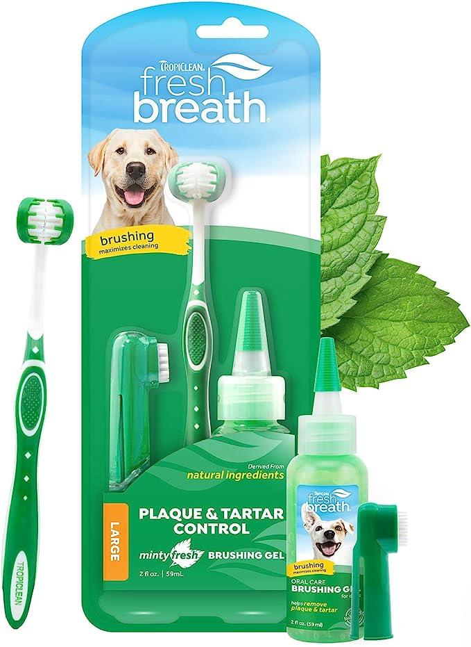 • El kit Fresh Breath de TropiClean para Perros Pequeños proporciona una solución completa de cuidado oral para
