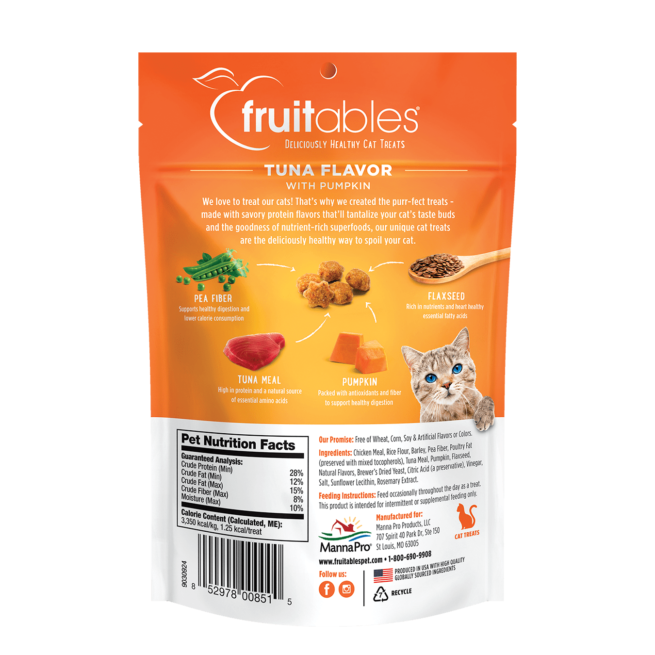 ¡Hemos creado las golosinas perfectas para gatos! Elaborados con sabrosos sabores proteicos que tentarán las papilas gustativas de su gato y superalimentos ricos en nutrientes, ¡nuestros exclusivos premios para gatos son la manera deliciosamente saludable de tratar a su gato! • Sabroso atún combinado con la bondad de los superalimentos ricos en nutrientes • Fabricado con una receta simple de ingredientes limitados. • Libre de subproductos animales, trigo, maíz, soja y sabores o colores artificiales. • Contiene 3,350 kcal/kg – 1.25 kcal/ por golosina