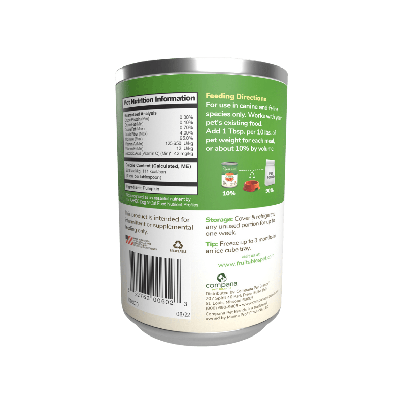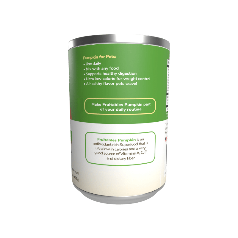 - Nuestro suplemento digestivo de calabaza es un complemento ideal para la rutina diaria de su mascota. Fruitables Pumpkin es ultra bajo en calorías y es una gran fuente de fibra dietética, por lo que es una excelente manera de apoyar la salud digestiva y un peso saludable.