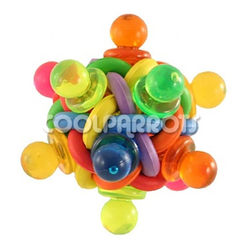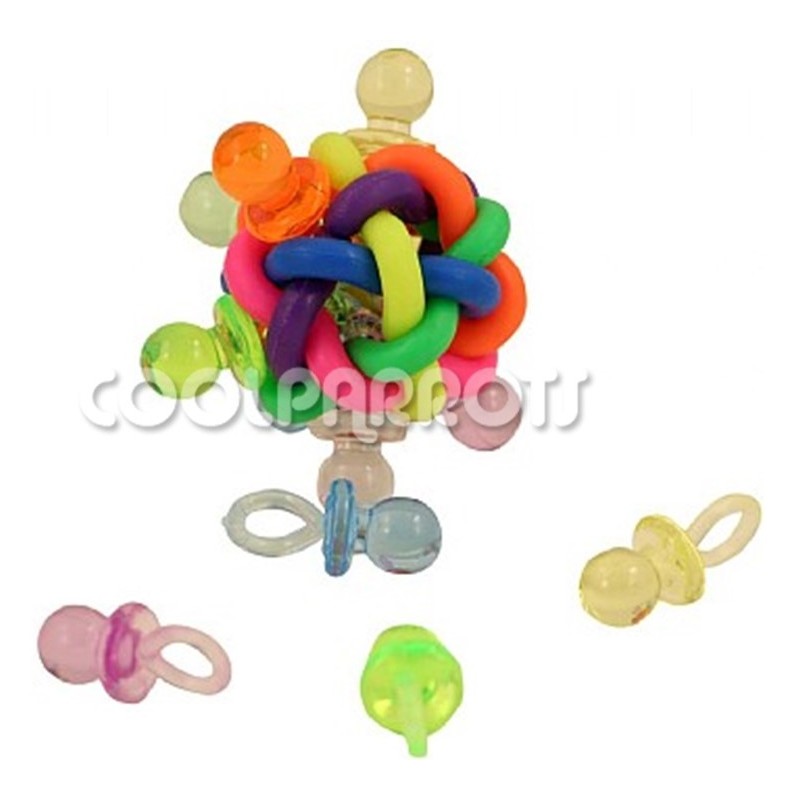 Si nuestra Goomy ball es uno de los juguetes de pata más apreciados por nuestros loros, este nuevo juguete consistente en la misma bola de goma mejorada con multitud de chupetes acrílicos introducidos en sus ranuras les va a encantar.
