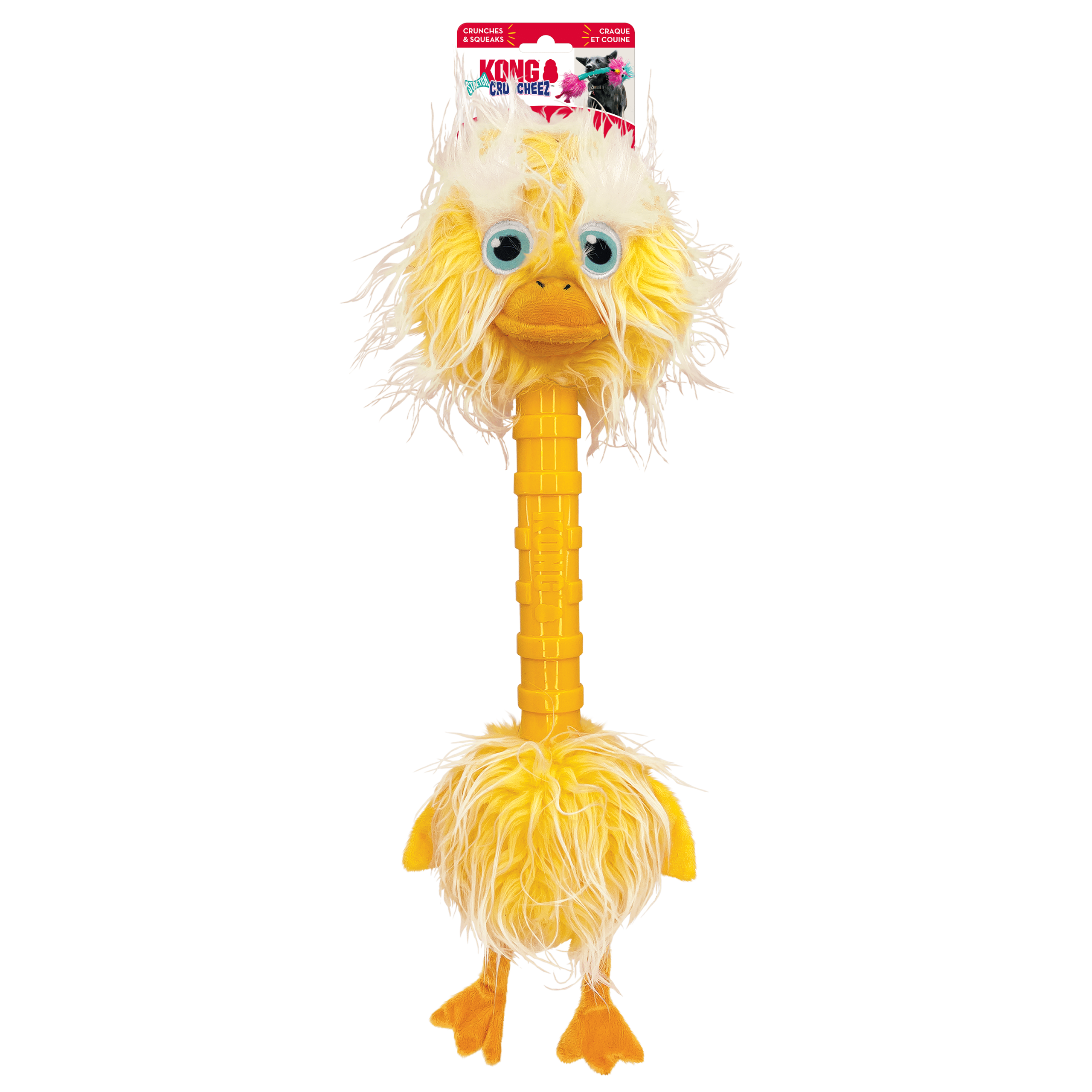 El largo cuello del KONG Cruncheez Stretch Bird chirría irresistiblemente cuando los perros lo
