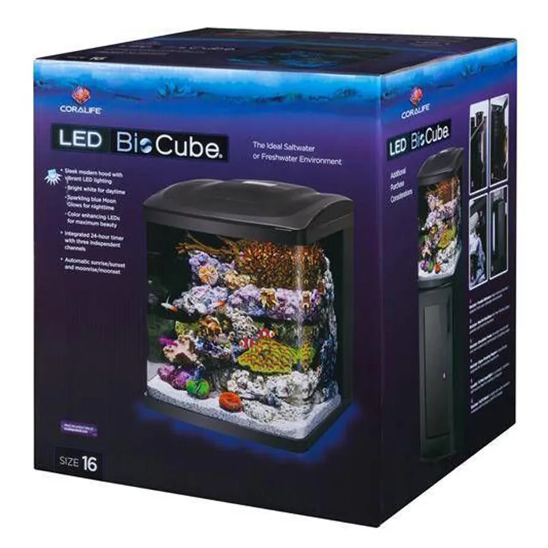 - Hinge-top canopy design (also compatible with Coralife® BioCube® 14 and 29)