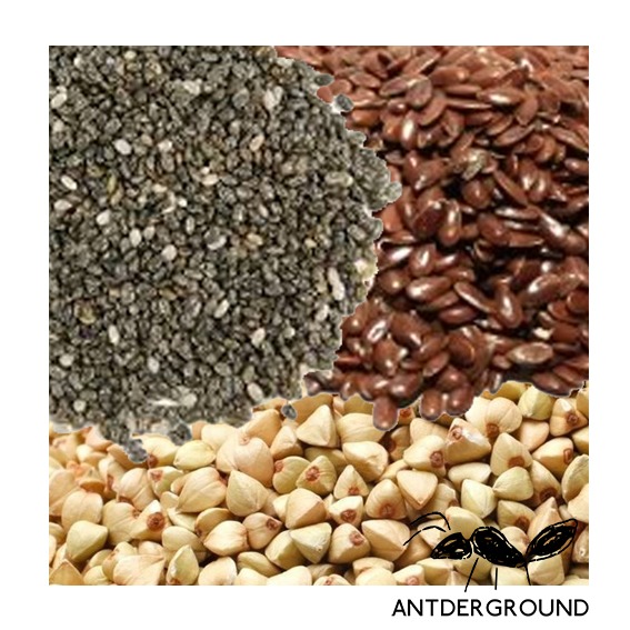 30 Gr de mezcla de semillas de Chia, Lino y Trgo sarraceno, especial para hormigas granivoras recolectoras