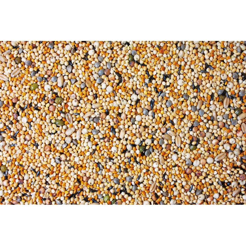 Composición: semilla de alpiste, mijo amarillo, mijo plateado, mijo del maná, zanahoria, mijo de Japón, semillas de gramíneas, hinojo, mijo de Senegal, avena, granos de sauco, amaranto. conchas de ostra, pétalos de camomila.