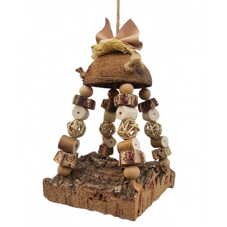Bonito balancín de corcho natural con cubierta de coco y diferentes piezas de caoba, sola, madera, ratán, cuero y maíz.