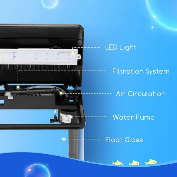 - Filtración Eficiente: Incluye un sistema de filtro integrado que mantiene el agua limpia y clara, aunque algunos usuarios recomiendan agregar una esponja en la entrada del filtro para proteger a los alevines de ser succionados.