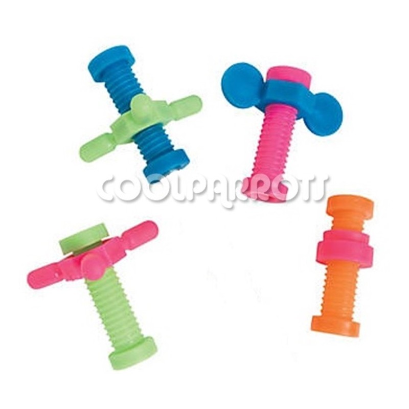 Divertidos, entretenidos y duraderos, este pack de 4 tornillos de diferentes formas y colores será seguro uno de los juguetes preferidos de nuestros loros.