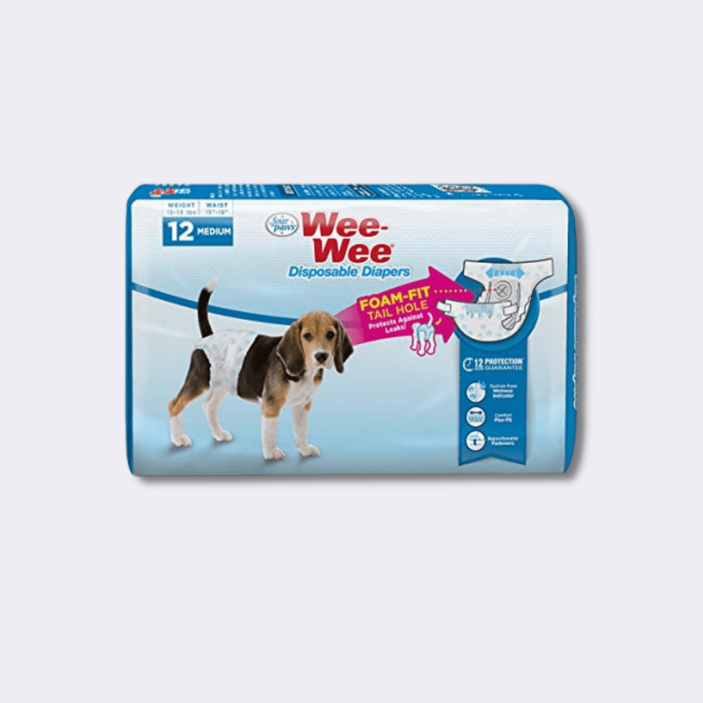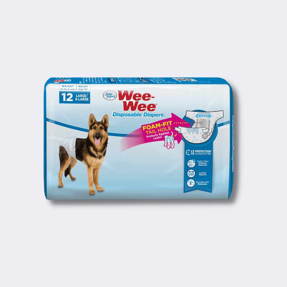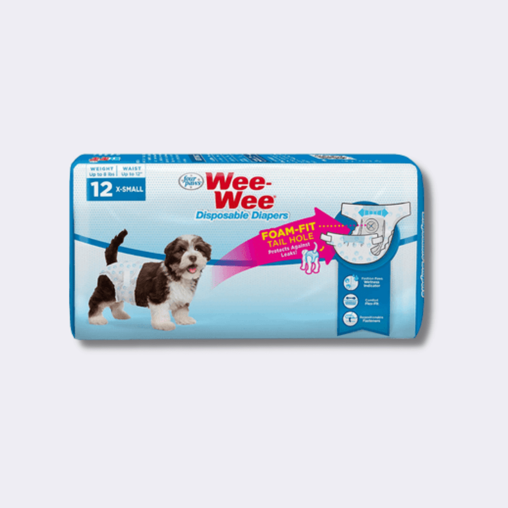 Wee Wee Diapers- Pañales desechables para perro. Diseñado para las mascotas con incontinencia, “orina excitable”, los cachorros no entrenados, y las perras en temporada.