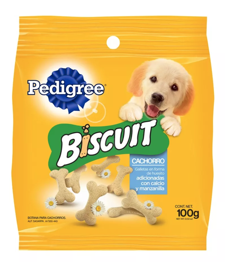 Pedigree Biscuits, deliciosas galletas enriquecidas con calcio que los ayudan a desarrollar dientes fuertes y sanos.