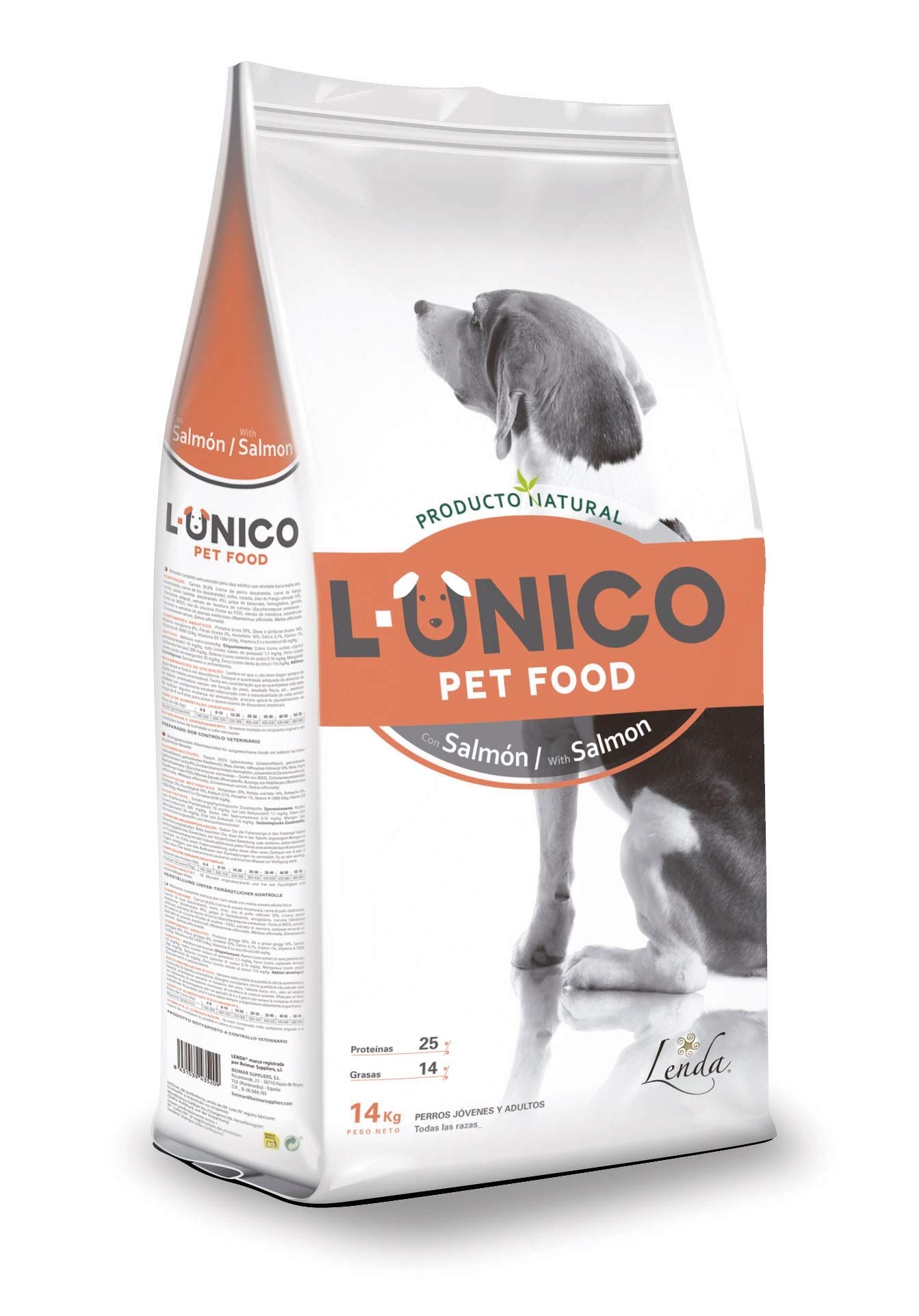 El Pienso Único Salmón de Lenda es un alimento para perros jóvenes y adultos rico en salmón y altamente digerible con proteínas de alto valor biológico que cubren todas las necesidades de nuestro amigo peludo.