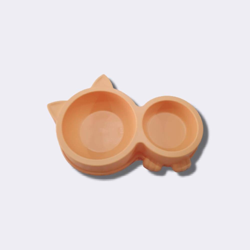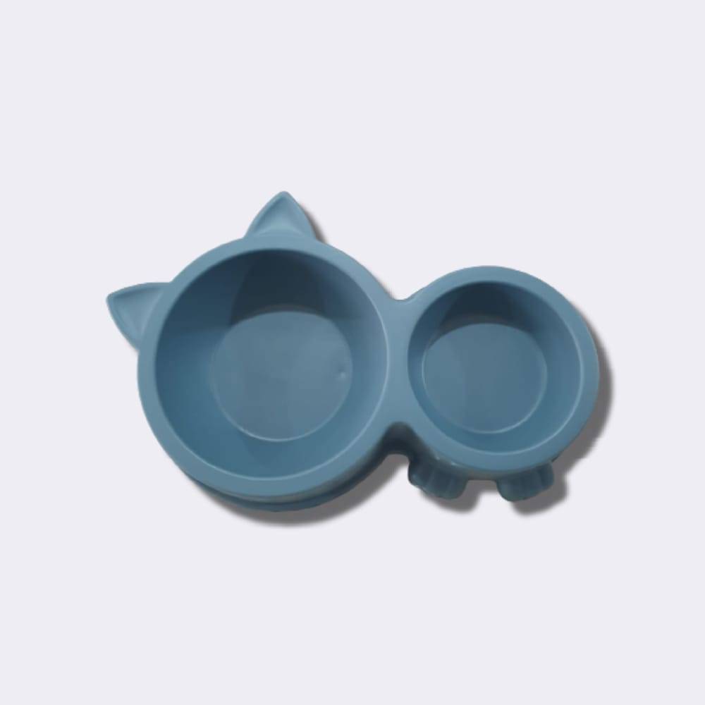 Plato comedero y bebedero para mascotas con diseño de gatito, orejitas y patitas: