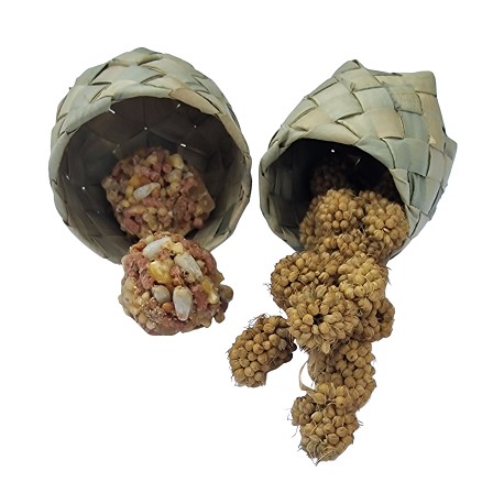 Pequeña cajita de hoja de palma para ofrecer a nuestros loros como juguete de pata o para añadir a cualquier juguete que queramos recomponer.