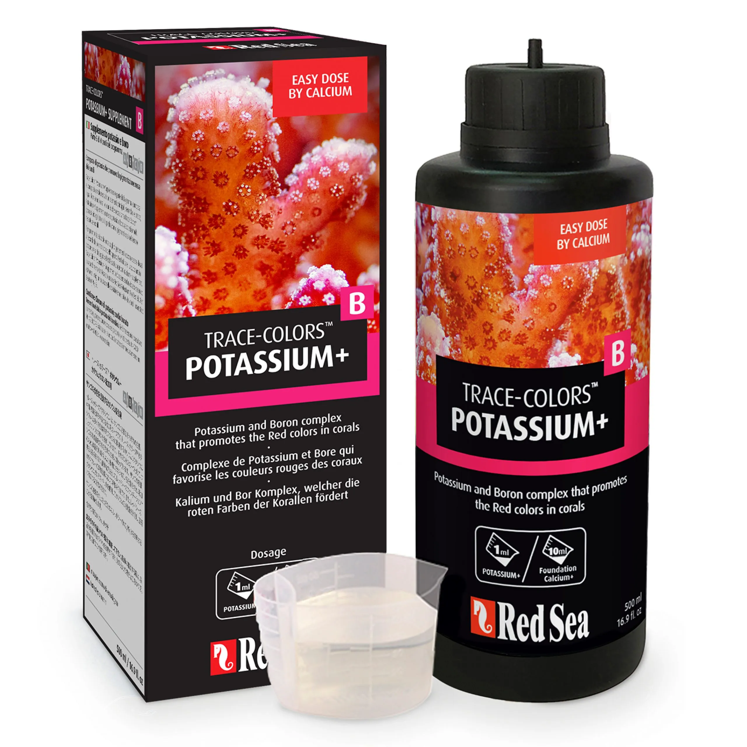 POTASSIUM+ Supplement contains potassium and boron that are associated with many biological processes, one of them being the production of the red pigments in the soft tissue of corals.
