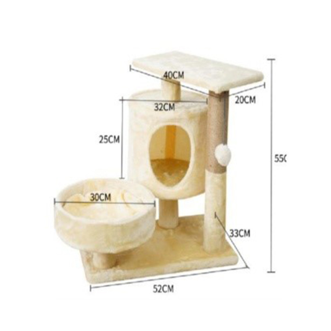 Rascador de madera con cama, escondite y piso superior. Medidas: 35*35*45 cm