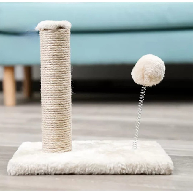 Rascador de madera con poste chico, base, resorte y pompón. Medidas: 26*18*25 cm