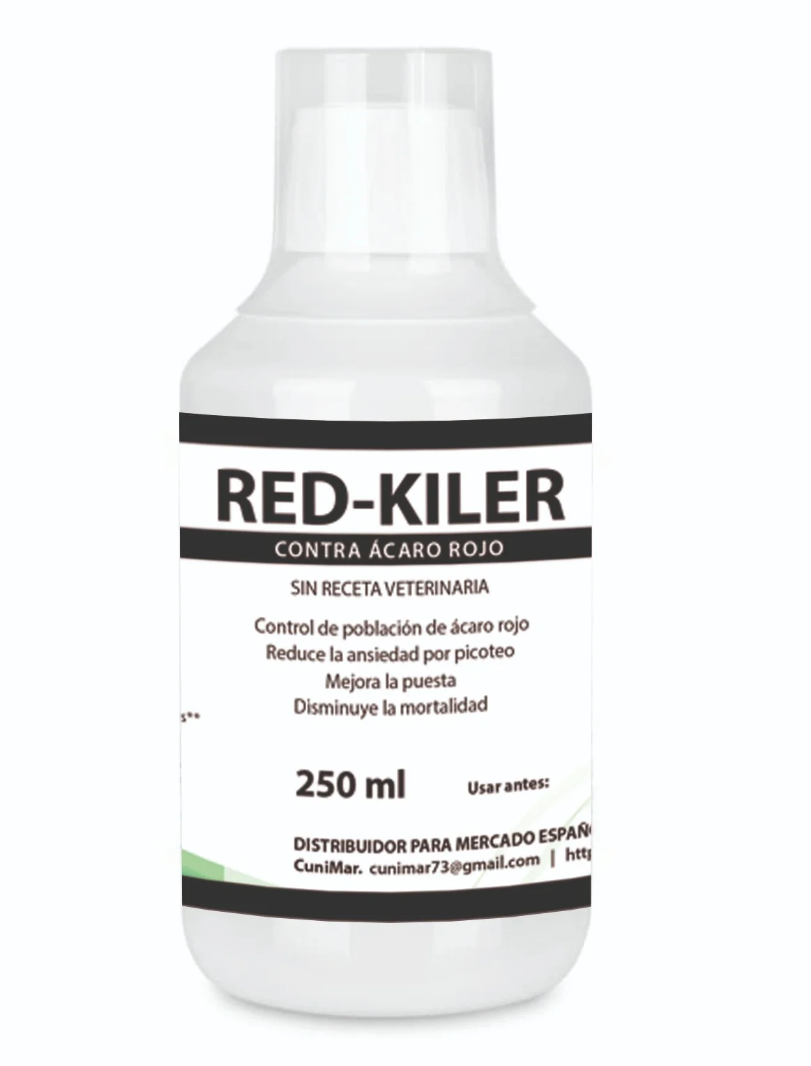 Red-Kiler Stop Red Mites es un alimento líquido complementario para aves de corral que controla eficazmente la población de ácaros rojos. Es un producto indispensable para todo avicultor que desee mantener a sus aves en óptimas condiciones de salud.
