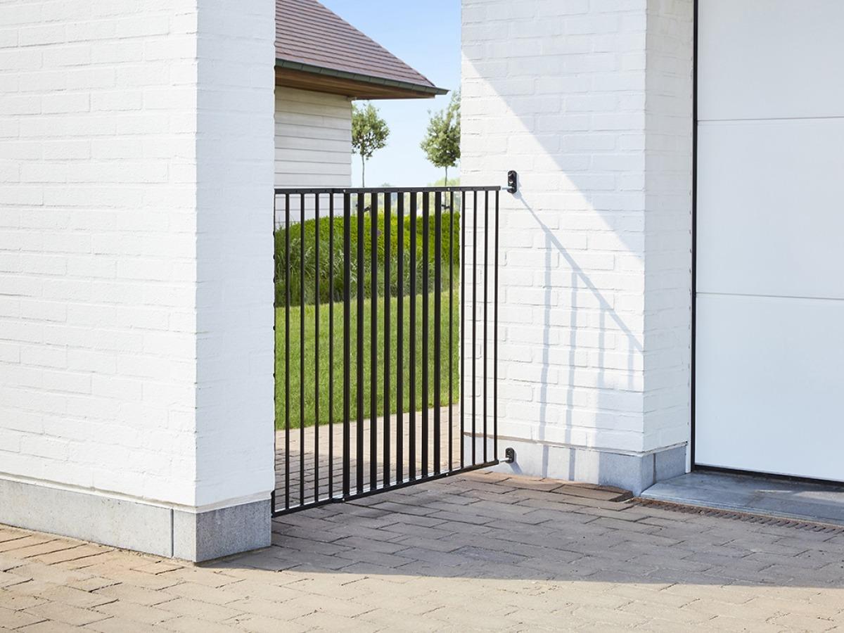 • Puerta extensible para perros, impide el acceso al jardín o al patio
