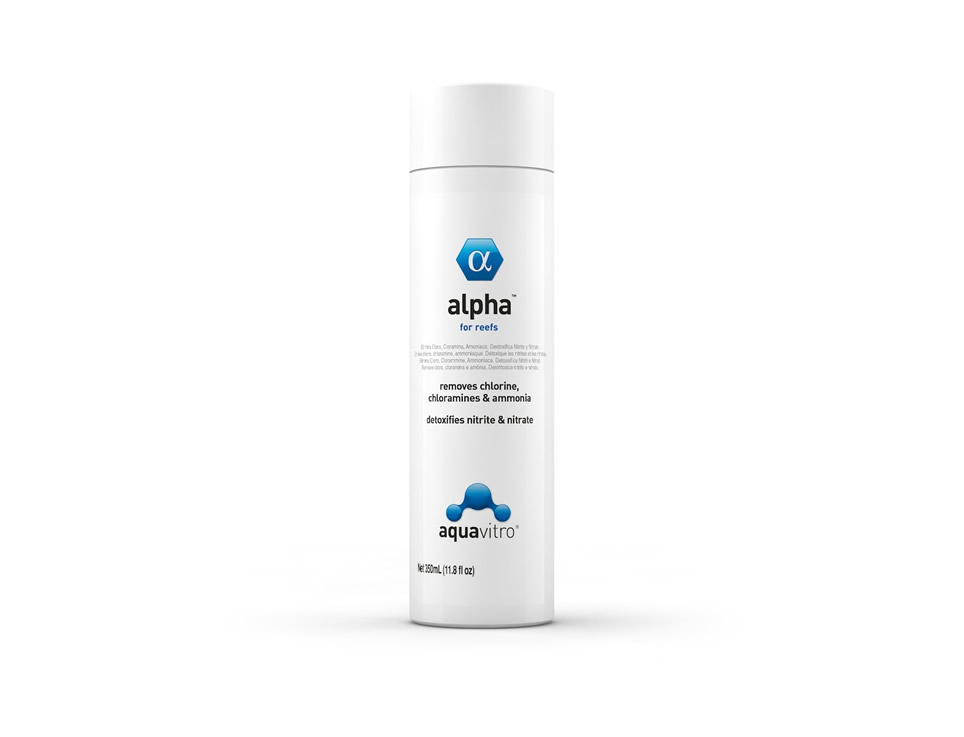 Alpha es un acondicionador concentrado para agua salada. Es, al menos, un 50% más activo que los acondicionadores de agua comunes. Elimina Cloro, cloramina y Amoniaco. Convierte Amoniaco a una forma segura y no tóxica que será usada por bacterias beneficiosas y otros habitantes del acuario.