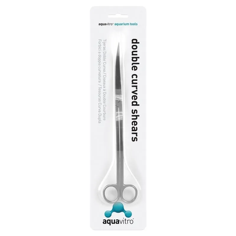 Tijeras de acero inoxidable quirúrgico calidad premium de la marca Aquavitro de Seachem. Detalle diseño ideal para el mantenimiento regular de plantas acuáticas, particularmente cuando las hojas y tallos están cerca al sustrato.
