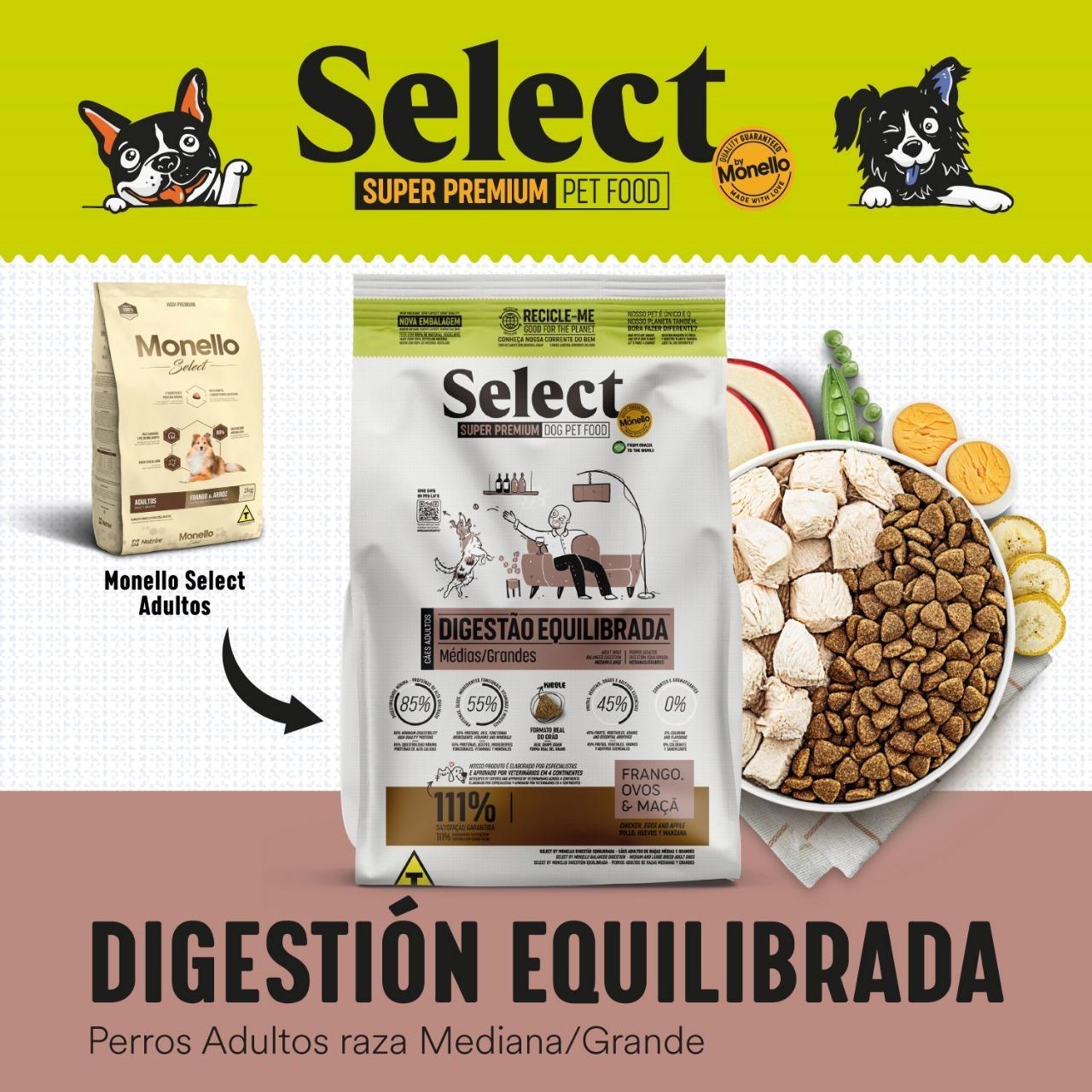 Ingredientes seleccionados fuentes de proteínas, aceites, ingredientes funcionales, vitaminas y minerales, mín. 55% (harina de vísceras de aves – mín. 23%, aceite de aves, aceite de salmón – mín. 0,5%, hidrolizado de hígado de aves, mezcla de huevos deshidratados – mín. 1,5%, salvado de gluten de maíz, salvado de soya, biomasa de microalgas Schizochytrium sp. – mín. 0,1%, levadura de cerveza inactiva deshidratada, mezcla prebiótica – mín. 0,1% – compuesto de: pared celular de levadura, galacto-oligosacáridos, fructo-oligosacáridos y levadura de caña de azúcar seca, hexametafosfato de sodio, sulfato de condroitina, sulfato de glucosamina, extracto de Yucca – mín. 0,01%, lisina, vitaminas A, D3, E, C, K3, B1, B2, B6, B12, pantotenato de calcio, ácido fólico, ácido nicotínico, biotina, cloruro de colina, minerales cloruro de sodio, cloruro de potasio, sulfato de manganeso, sulfato de zinc, glicinato de zinc, sulfato de hierro, sulfato de cobre, yodato de calcio, selenito de sodio, selenio metionina). Frutas, vegetales, granos y aditivos esenciales, mín. 45% (grano de maíz, salvado de trigo, arroz quebrado, mezcla concentrada de frutas y vegetales deshidratados – compuesta por: harina de papa dulce, manzanas – mín. 0,03%, plátanos – mín. 0,03%, arándanos, zanahorias – mín. 0,03% y harina de arvejas – mín. 0,05%, pulpa de remolacha deshidratada – mín. 0,5% y aditivos antioxidantes BHA y BHT).