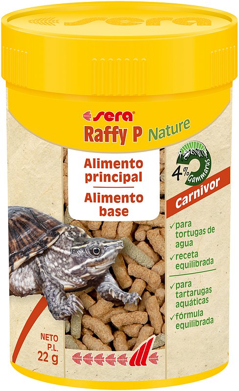 El fundamento equilibrado para tortugas acuáticas, sera Raffy P Nature es el alimento principal en forma de granulado flotante elaborado conservando todas sus propiedades para reptiles carnívoros, como las tortugas acuáticas.