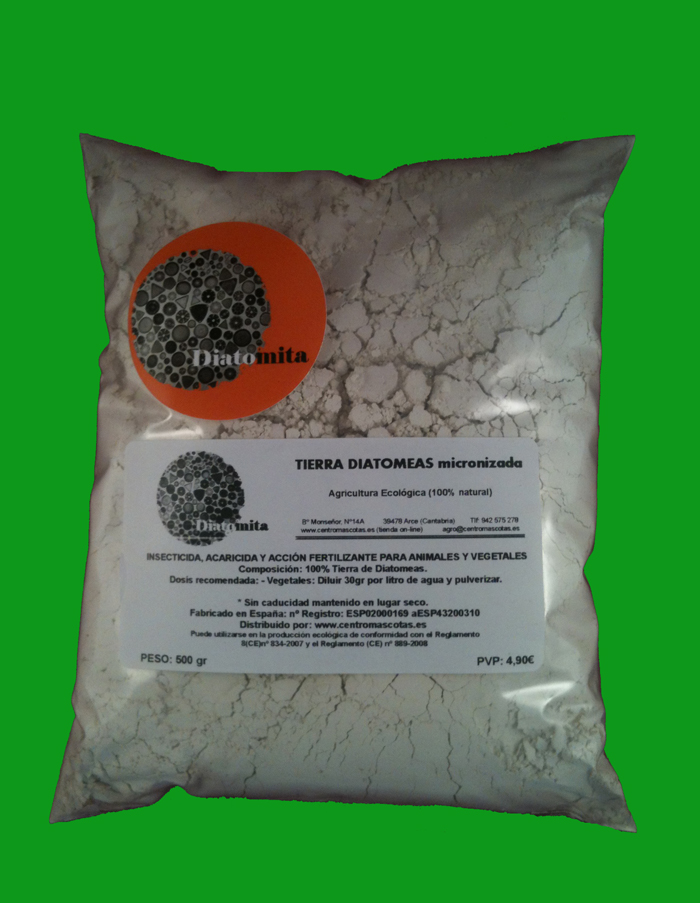 La tierra de diatomeas micronizada es un INSECTICIDA, ACARICIDA Y FERTILIZANTE de origen 100% natural e inofensivo para humanos y animales mamíferos ya que no contiene venenos ni sustancias tóxicas. Está indicado principalmente para USO VEGETAL de forma pulverizada, previamente diluida en agua ( 30gr / Litro de agua); también se puede utilizar para Uso Animal con la misma proporción.