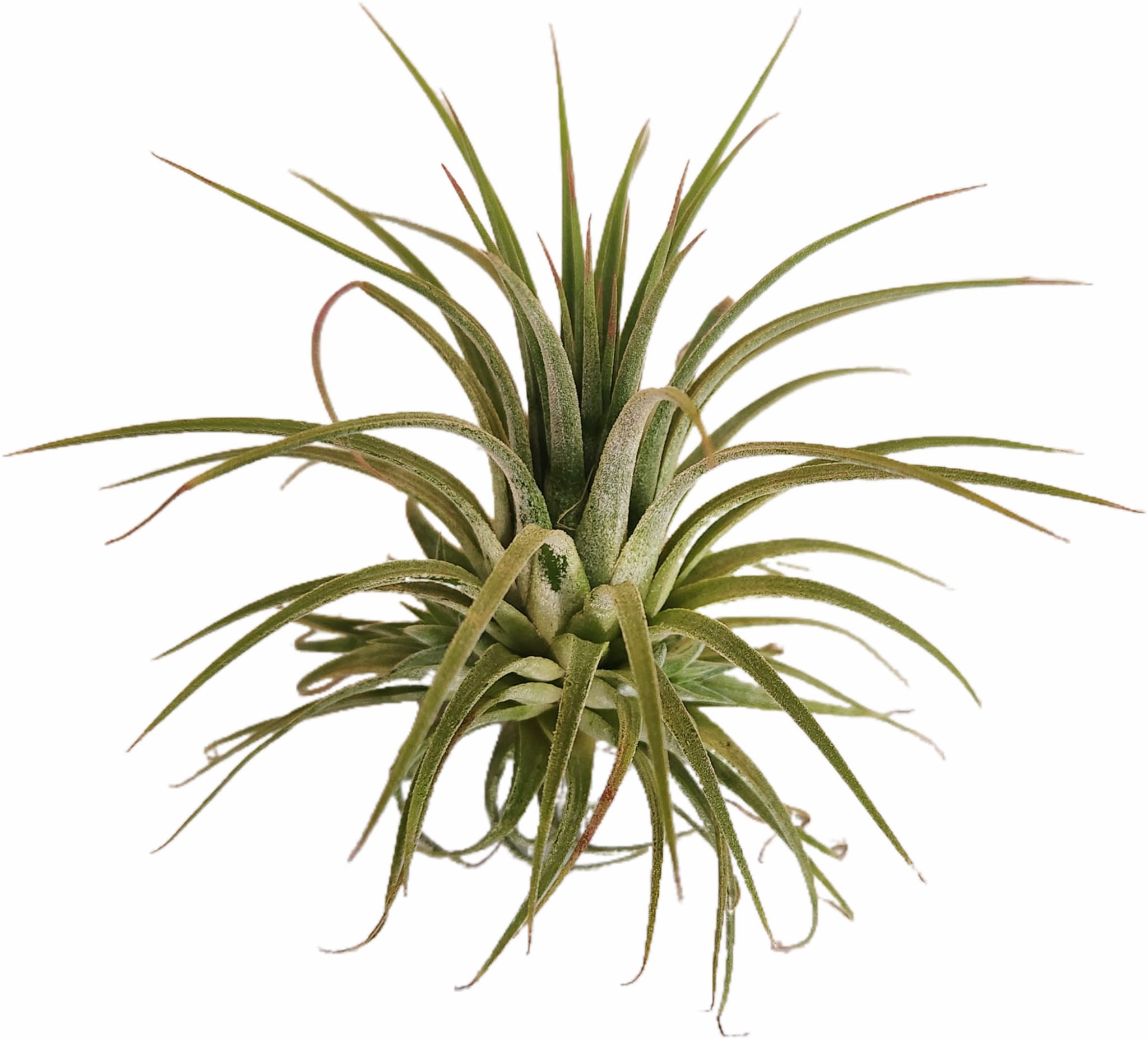 La Tillandsia ionantha es una de las plantas aéreas más populares gracias a su tamaño compacto, resistencia y belleza. No necesita tierra para vivir, ya que absorbe agua y nutrientes a través de sus hojas recubiertas de tricomas. Presenta hojas finas, en forma de roseta, que suelen ser verdes plateadas y se tiñen de tonos rojos o rosados en época de floración, creando un contraste muy llamativo con sus flores tubulares de color violeta.